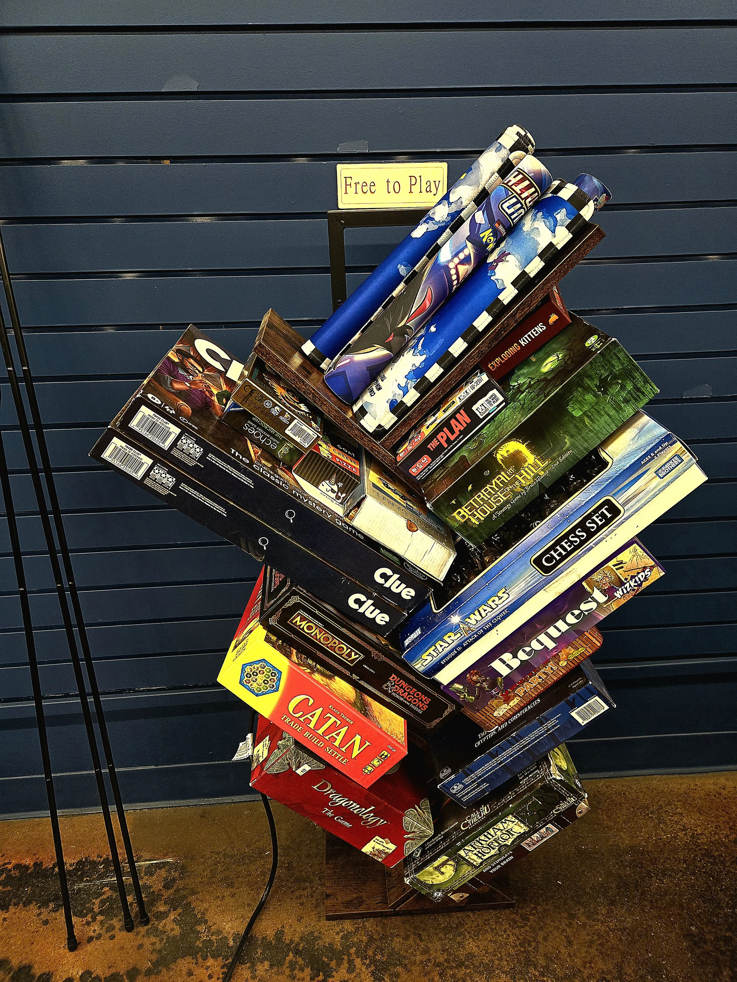 Free board games for use. Tables are free unless they are all taken for an event.